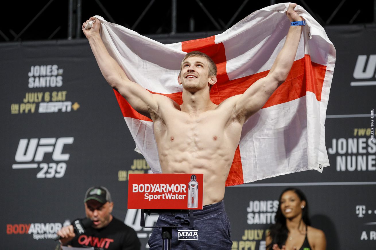 Arnold Allen is currently a top-ranked featherweight and at UFC London he put on the best performance of his career, stopping Dan Hooker in just 2 minutes and 33 seconds. Allen was not the only British fighter to show out that evening, as Tom Aspinall, Paddy Pimblett, Molly McCann, Paul Craig, Jack Shore, and Muhammad Mokaev all scored impressive wins at the event, with Aspinall in particular garnering attention for his sensational first-round submission of Alexander Volkov. But despite the string of great performances, Allen says that the best current British MMA fighter wasn’t actually competing that evening.