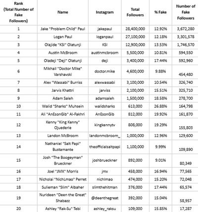 Check out the top 20 list below, which includes Jake Paul, Logan Paul, KSI, and many more: