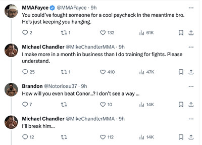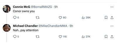 Chandler then went to war with defensive McGregor fans on Twitter.