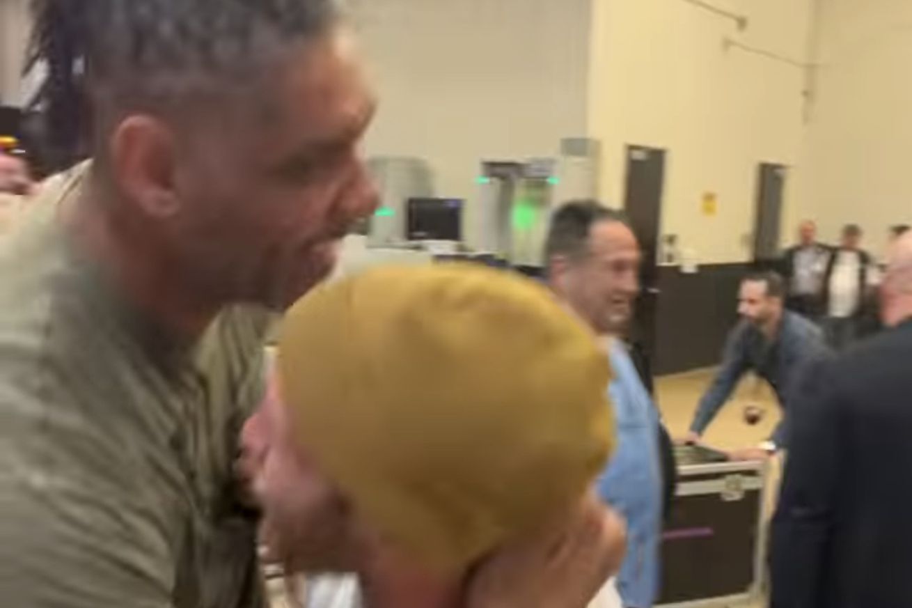 Rockhold was at UFC San Antonio in support of Marlon Vera, who’s a fellow trainee of boxing coach Jason Parillo. Yes, that’s the same Parillo who coached Michael Bisping to dethrone Rockhold via left hook knockout, and it’s also the very same Parillo who sneaks in a slap at the end of the featured clip!