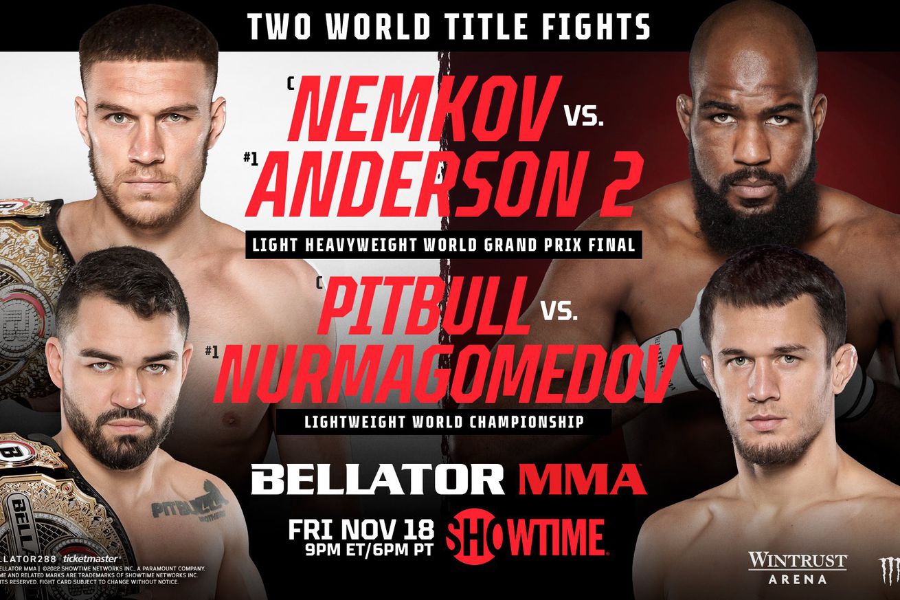 Bellator MMA’s Light Heavyweight Grand Prix will finally come to an end (we hope) when Vadim Nemkov puts his belt on the line against Corey Anderson for the second time in the main event of Bellator 288 on Nov. 18, 2022 in Chicago, Illinois.