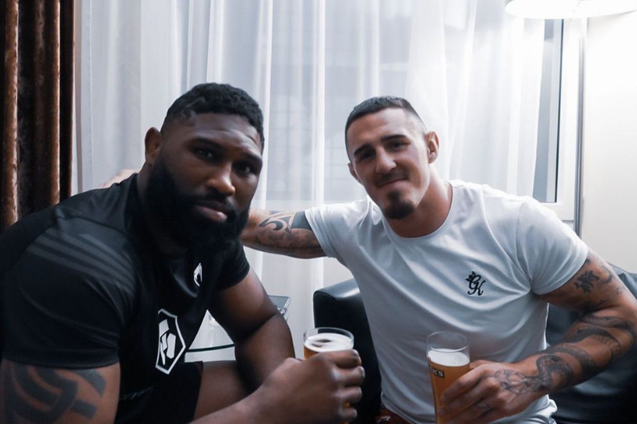 Things did not end well for Curtis Blaydes and Tom Aspinall yesterday (Sat., July 23, 2022) at UFC London live on ESPN+ from inside O2 Arena in London, England, but the two heavyweights came together after their main event to crack a few beers.