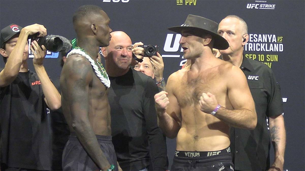 Watch Israel Adesanya and Sean Strickland step on the scales at the UFC 293 Ceremonial Weigh-Ins video: Israel Adesanya vs Sean Strickland after they weighed in early at the UFC 293 official weigh-ins.