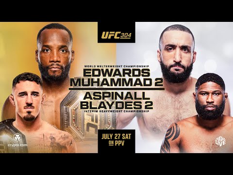 UFC 304: Edwards vs Muhammad 2 – Saturday, July 27 – 10pm ET / 7pm PT start. the UFC is back Manchester, England for its first visit to the Co-op Live Arena, and it’s bringing plenty of heavy hitters to the Octagon for a stacked UFC 304 card. In the main event, Birmingham’s Leon Edwards defends his welterweight title for the third time against an old rival in Belal Muhammad, who brings a 10-fight unbeaten streak into this long awaited rematch. Plus, interim heavyweight champion Tom Aspinall will also meet an old foe, as Manchester’s own defends his belt against the only man to defeat him in the Octagon, Curtis Blaydes. *Purchase includes viewing for 24 hours from the event start* Don't miss the early prelims on UFC Fight pass. Sign-up at https://ufc.ac/3ytKCE6 Subscribe to get all the latest UFC content: https://ufc.ac/3u8FIJp Experience UFC live with UFC FIGHT PASS, the digital subscription service of the UFC. Visit https://ufcfightpass.com/ ???? Shop official UFC Gear, visit https://ufcstore.com
