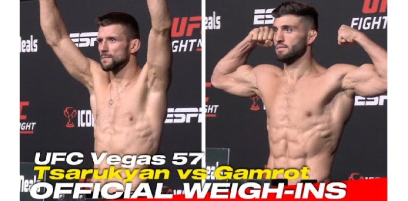 Lightweights Arman Tsarukyan vs. Mateusz Gamrot headline the event at the UFC Apex in Las Vegas and both tipped the scales at 156 pounds. See how they looked on the scales.