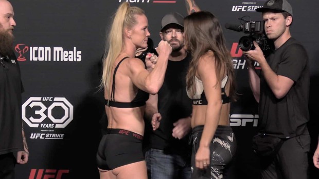 Watch the UFC Vegas 77 fighters face off following the official weigh-ins. Holly Holm faces Mayra Bueno Silva in the main event.